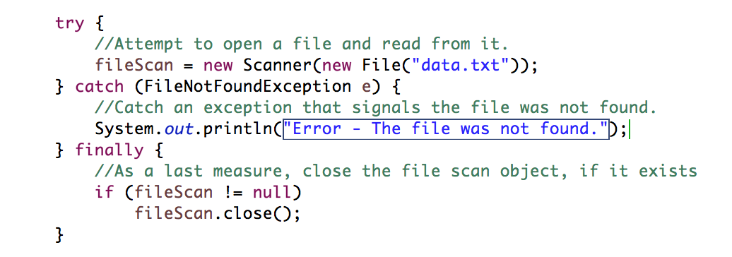 catch (FileNotFoundException e) {
