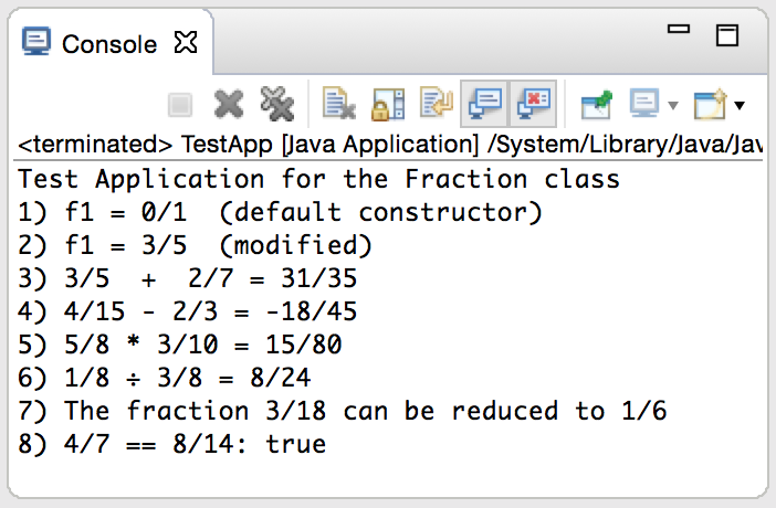 System.out.print("7) The fraction " + f9.toString() + " can be reduced to ");