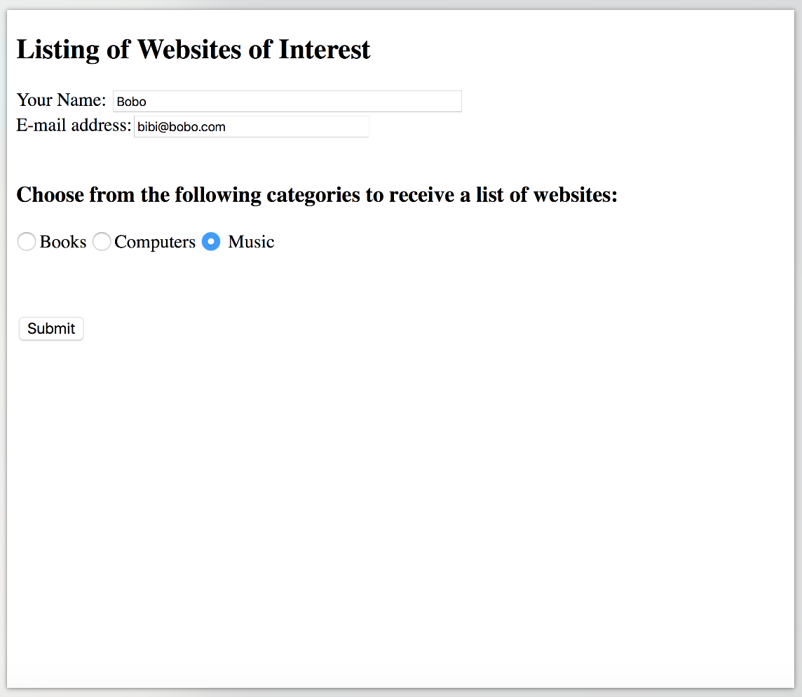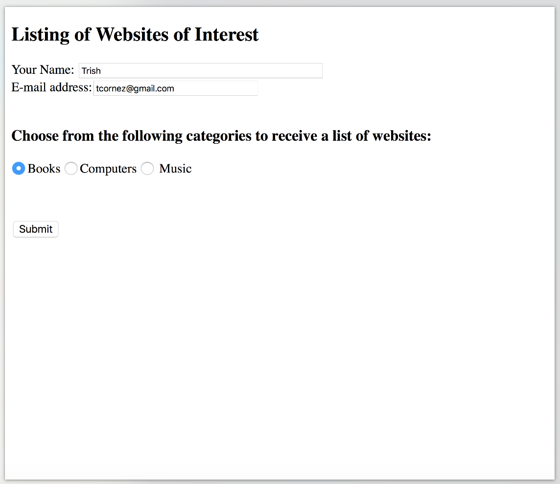 - Read the user's name, email address, and area of interest.