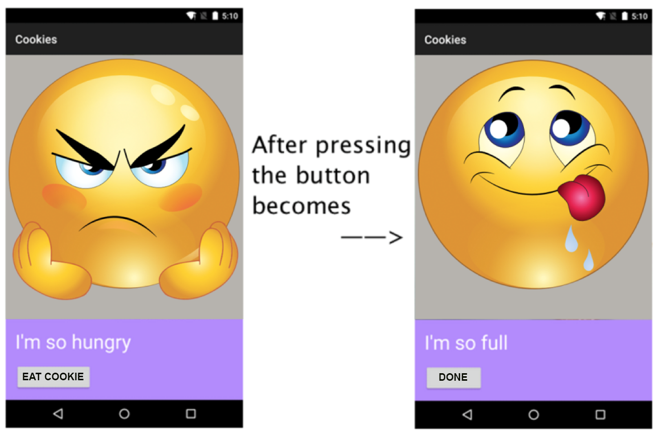 After hitting the button "EAT COOKIE", the character becomes "happy" with