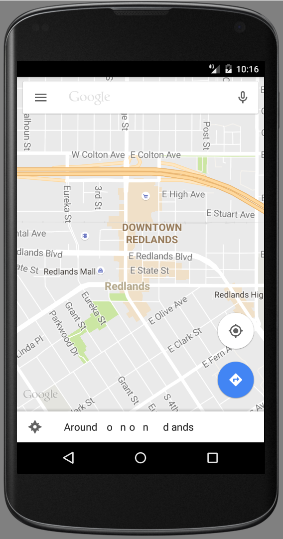 Provide a button for the user to access downtown Redlands in Google Maps.
