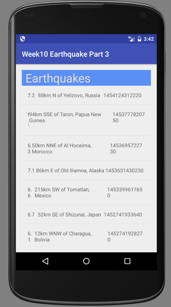 3. Part 3: Rebuild the Earthquake App so that it uses a separate class, QueryUtils, as a query utility to extract earthquakes to an ArrayList. QueryUtils is a JSON helper class that will perform the requesting and receiving of earthquake data.
