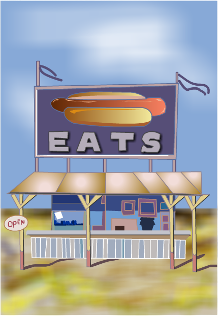 Rely on the use of layers to separate drawn elements. For example, use layers for the sky, sandy beach, hotdog, etc.