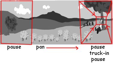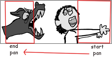 In this exercise you will examine a constructed storyboard and then use it as a guide to create an animated linear narrative. Storyboards serve as blueprints for creating an animated narratives. Take a moment to view the animation on the right. See if you can identify the different camera techniques that are being used. These camera techniques are specified in the completed storyboard you'll be exploring. |