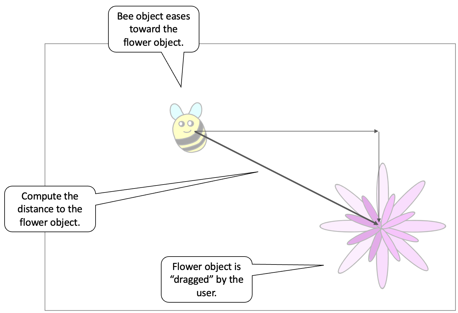 Code the Bee so that moves toward the Flower