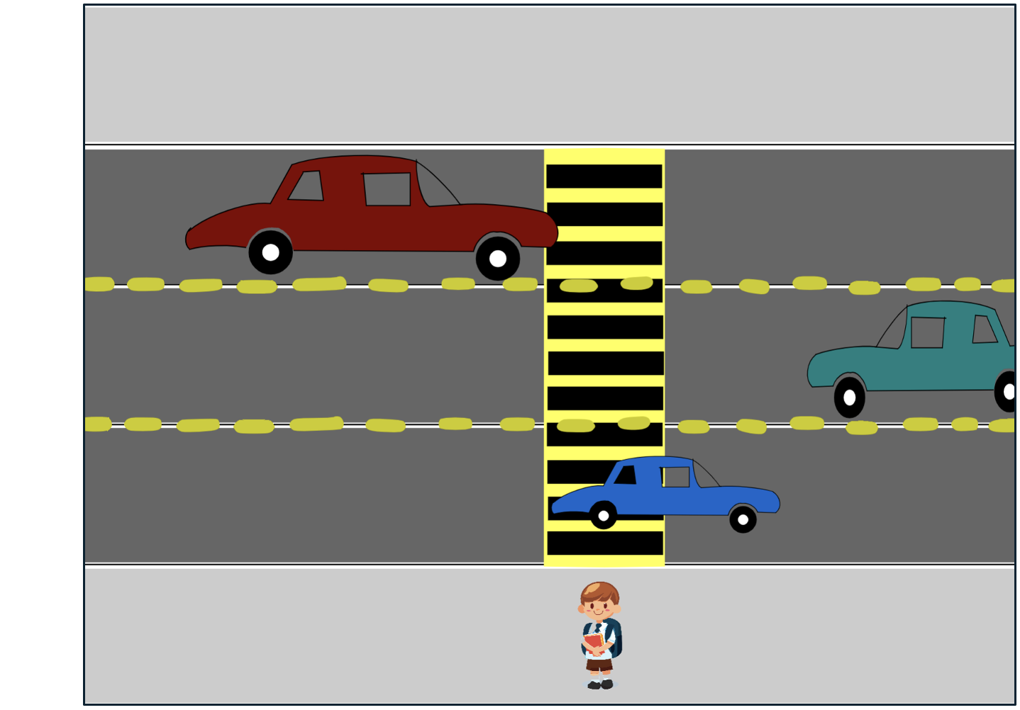 Each street lane contains a car that moves