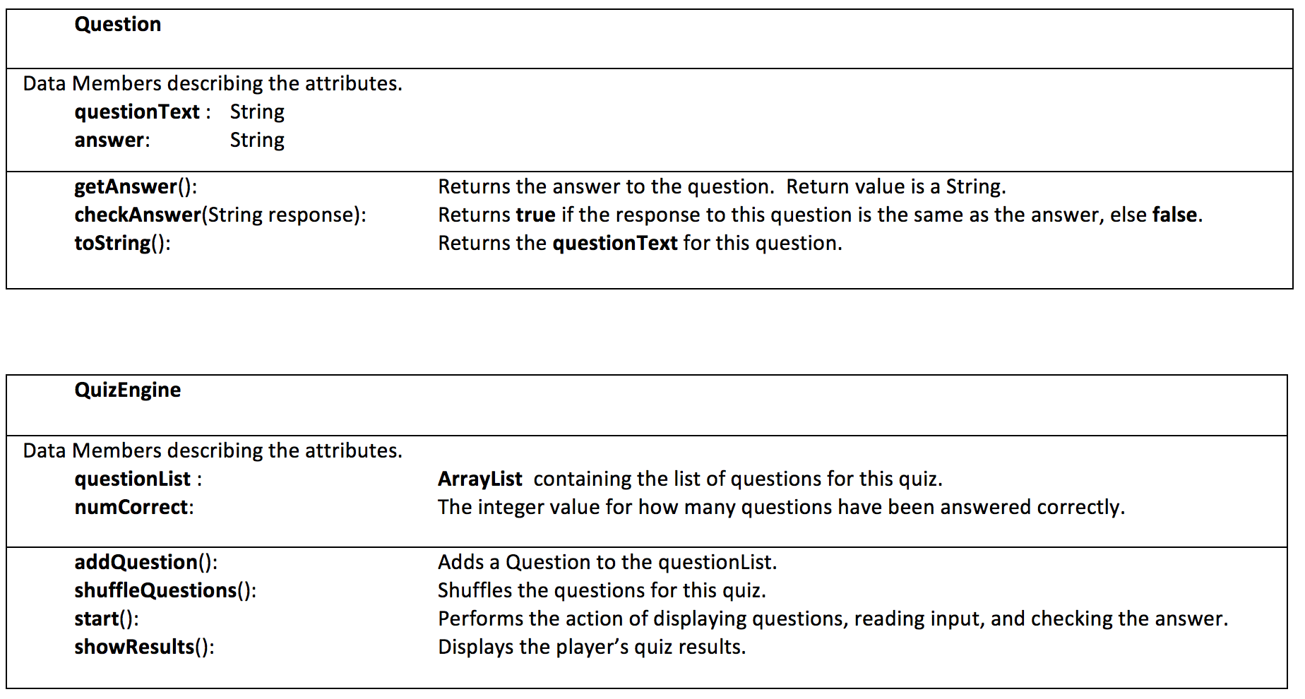 Goal 2: Use the following UML diagram (Unified Modeling Language) as your guide in building each class.