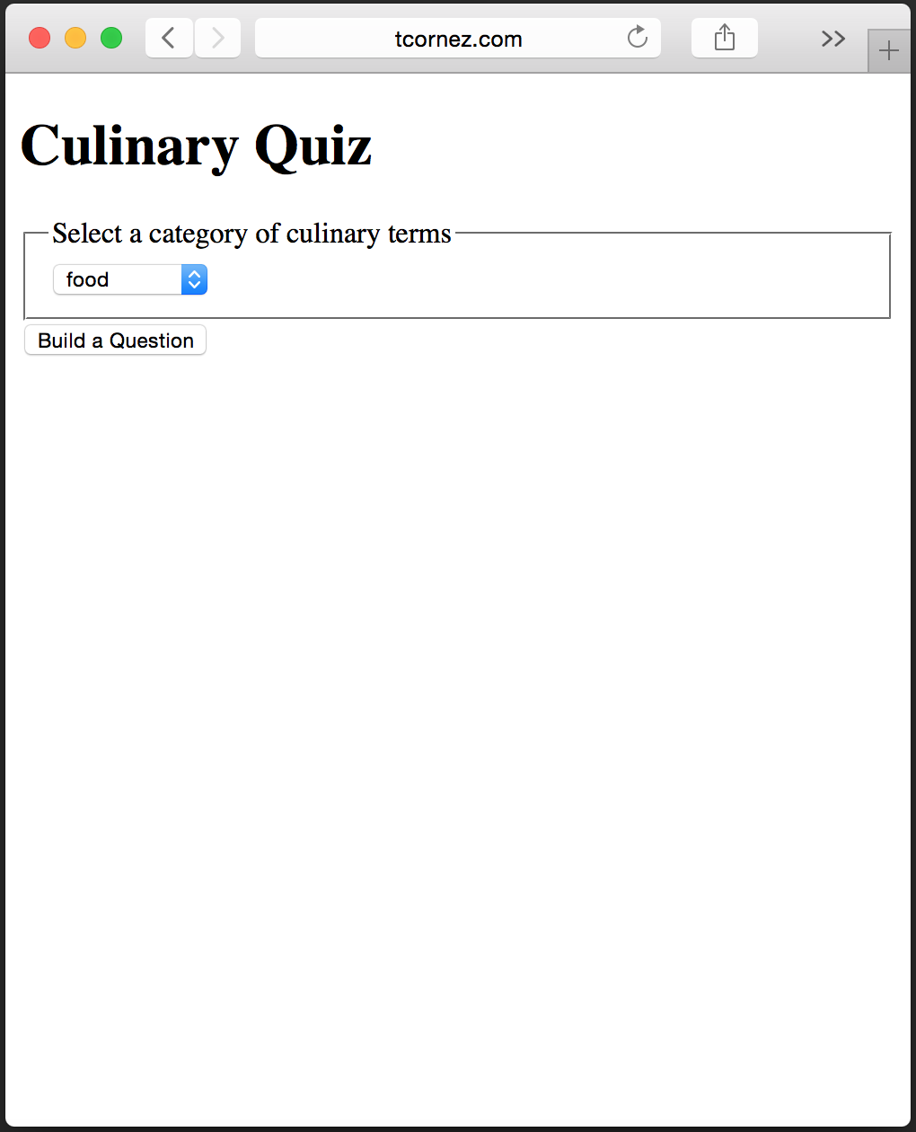 - Allow the user to specify a culinary category in which to build a quiz question.