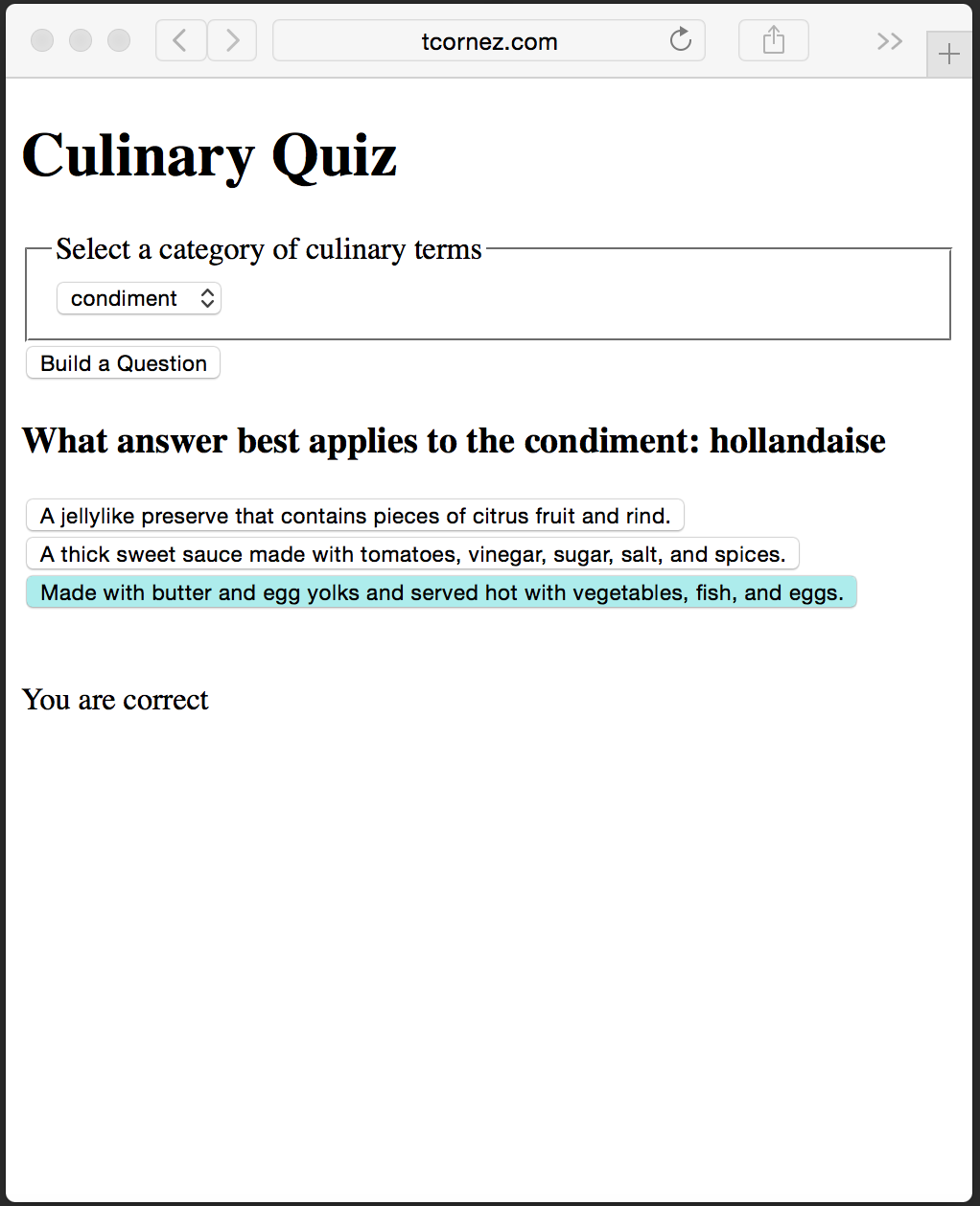 - Build the PHP and JavaScript driven Culinary Quiz App shown in the mockup below.