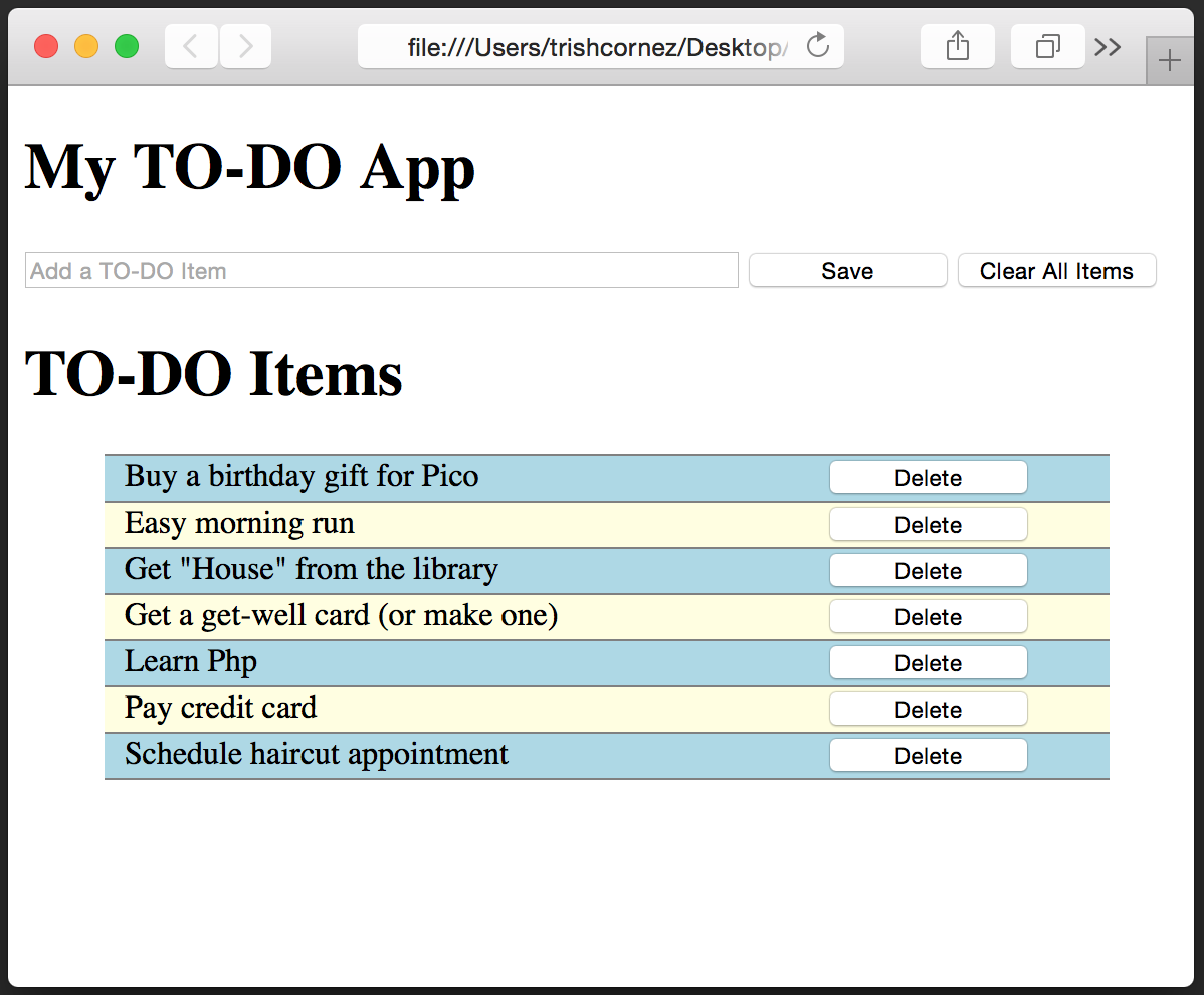 Create the following website. TIP: Store and retrieve key/value pairs using HTML5 localStorage.